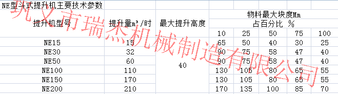 三.NE系列板鏈斗式提升機(jī).NE系列板鏈斗式提升機(jī)是一種新型的斗式提升機(jī),其采用板鏈傳動(dòng),區(qū)別于老型號(hào)TB系列板鏈斗式提升機(jī),其命名方式采用提升量而命名而非斗寬。如NE150指的是提升量為150噸一小時(shí)而不是斗寬150。NE系列斗式提升機(jī)有著很高的提升機(jī)效率,根據(jù)提升速度不同還分有NSE型號(hào)及高速板鏈斗式提升機(jī).NE系列斗式提升機(jī)主要技術(shù)參考圖: